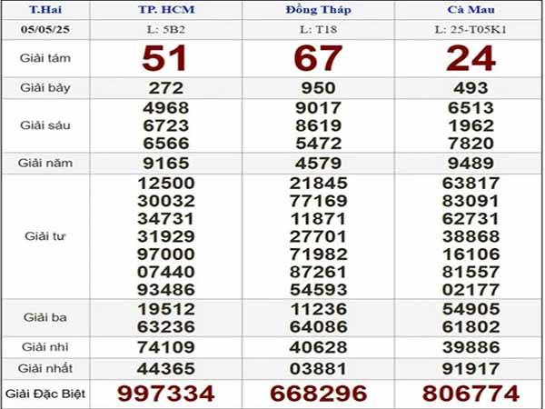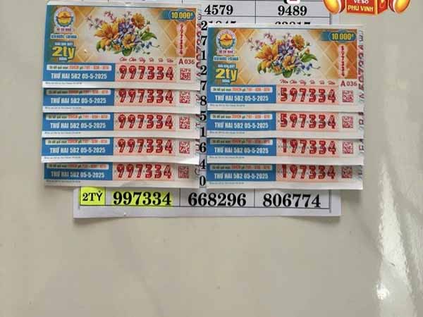 Trên các nền tảng mạng xã hội, cư dân mạng đang lan truyền hình ảnh 5 tờ vé xổ số trúng giải đặc biệt, được đăng tải bởi một đại lý vé số địa phương, thu hút sự chú ý lớn từ cộng đồng. Những tờ vé số này trúng thưởng theo kết quả quay số của đài TP.HCM ngày 5.5 với dãy số may mắn 997334. Ngoài ra, đại lý cũng tiết lộ có thêm 4 tờ trúng giải an ủi, mỗi giải trị giá 50 triệu đồng (chưa khấu trừ thuế).