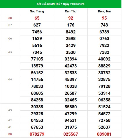 Trước khi đi vào bài viết phân tích XSMN ngày 26/3/2025, thì các chuyên gia của chúng ta phải dựa vào bảng KQ xổ số miền Nam kỳ trước , để mà phân tích những vị trí loto đẹp nhất và phân tích thông tin XS miền Nam cho trong ngày hôm nay.